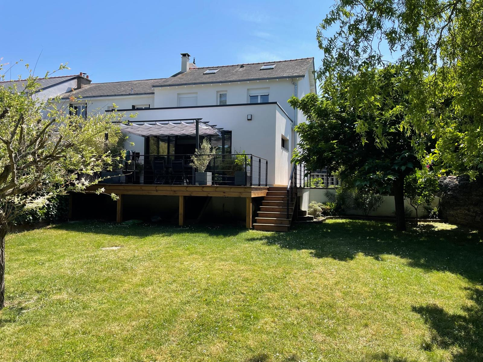Nichée au fond d’une impasse, dans un environnement calme et familial, cette maison de 1963 entièrement rénovée et en excellent état séduit par ses volumes et sa luminosité. L’entrée s’ouvre sur un vaste séjour chaleureux, agrémenté d’une cheminée. La cuisine récente, semi-ouverte, est entièrement aménagée et équipée. Un spacieux salon lumineux de 27 m² bénéficie d’une agréable vue dégagée sur le jardin. Depuis celui-ci, une terrasse surplombant les extérieurs permet de profiter pleinement des beaux jours en toute simplicité. À l’étage, un palier dessert trois chambres, un bureau pouvant être aménagé en chambre supplémentaire, ainsi qu’une salle d’eau. Un garage, une cave et un puits complètent l’ensemble, tandis qu’une chaudière gaz récente garantit confort et performance énergétique. Son potentiel d’évolution est un véritable atout : extension possible pour une vie de plain-pied et terrain piscinable, autant d’opportunités pour adapter la maison à vos projets.